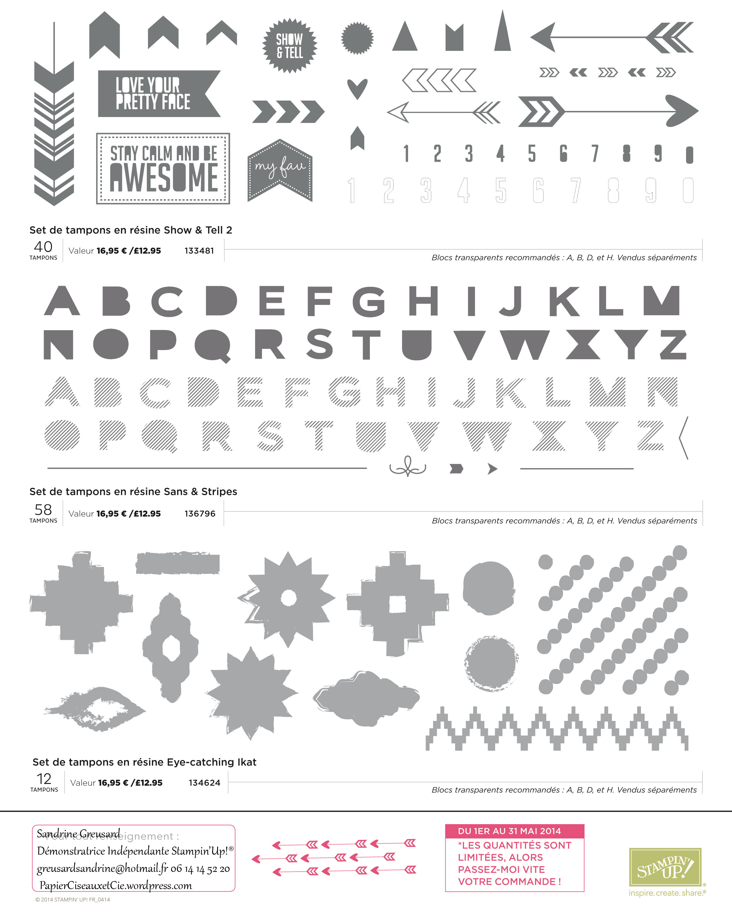 Ces tampons sont une serie limitée, ils ne feront pas partis du catalogue annuel 2014-2015 qui sortira en janvier, aussi n’attendez pas pour les obtenir! Envoyez-moi votre commande par mail: greusardsandrine@hotmail.fr ou passez votre commande sur le site Stampin’Up!® > ici < avec le code hôtesse: KECY7WYJ