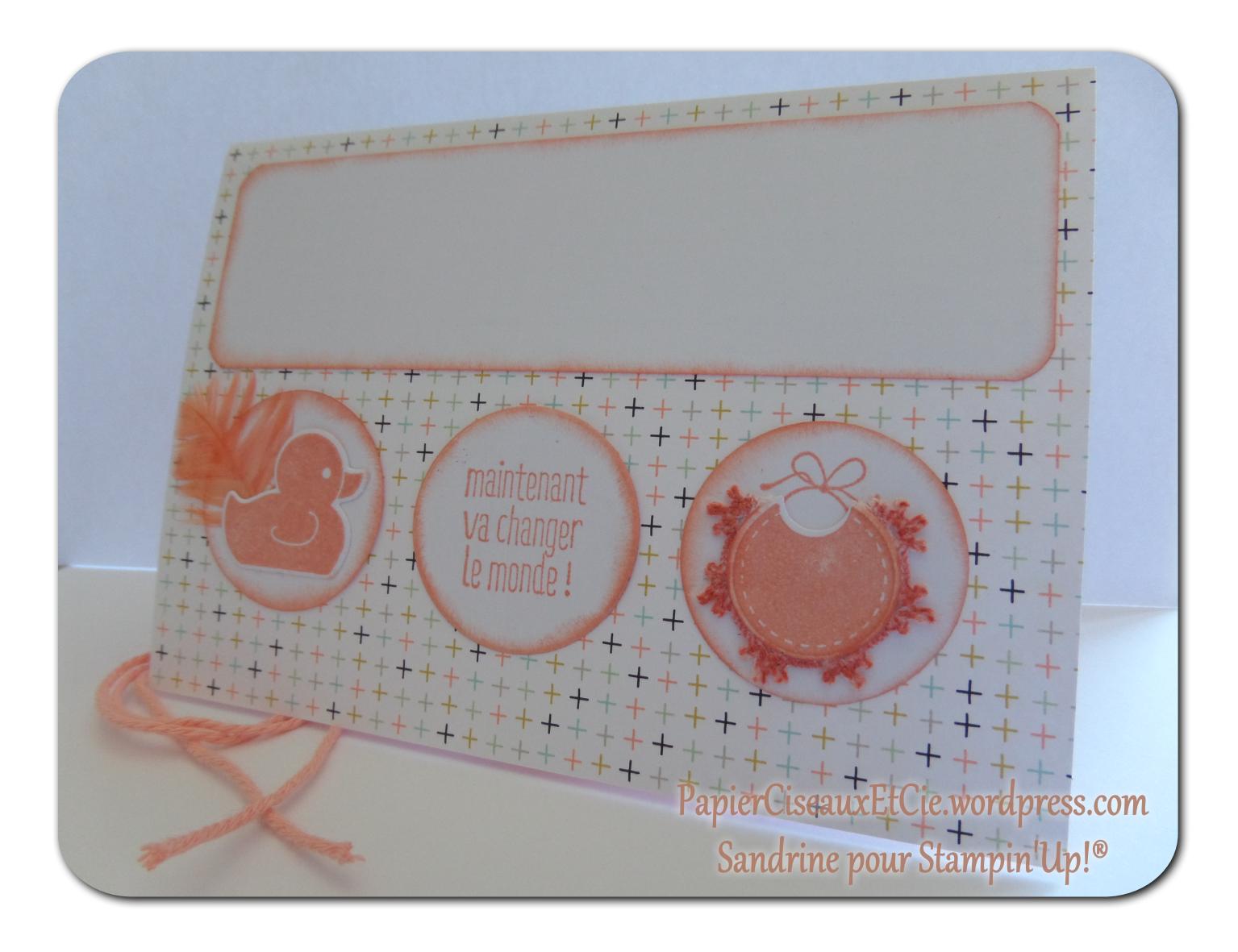 Le message vient du set de tampon « Quelque chose à dire » et je trouve qu’il colle bien à la venue d’un petit bout 🙂