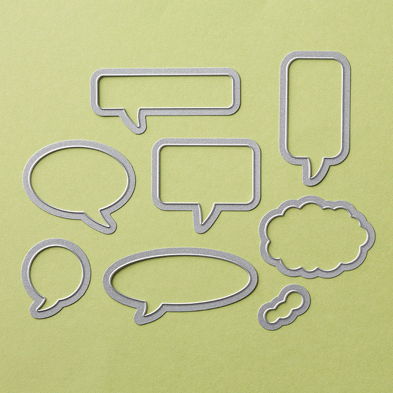 le lot comprend les framelits (découpes big shot) « Ça Bulle » et le set de tampons assortis « Petit quelque chose »: