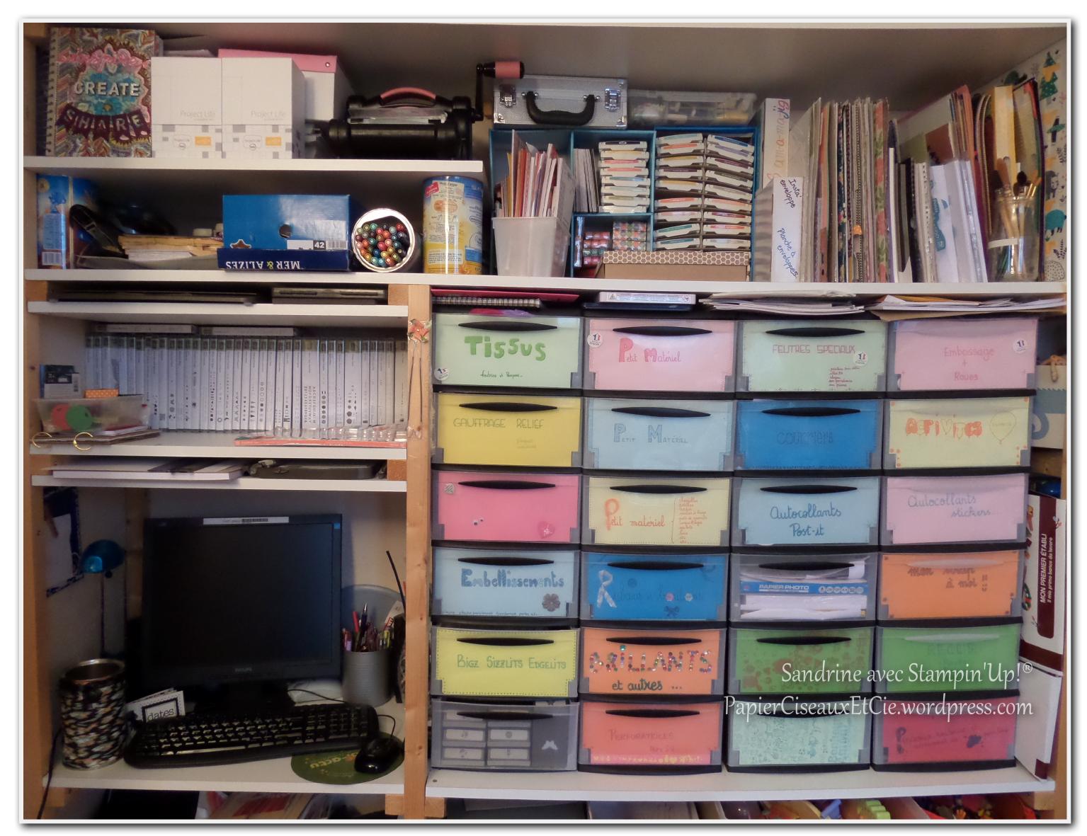 Voici ma partie à moi (enfin presque rien qu’à moi.. parce que je partage beaucoup de tampons, papiers, de paillettes, perfo etc… avec mes loulous!):