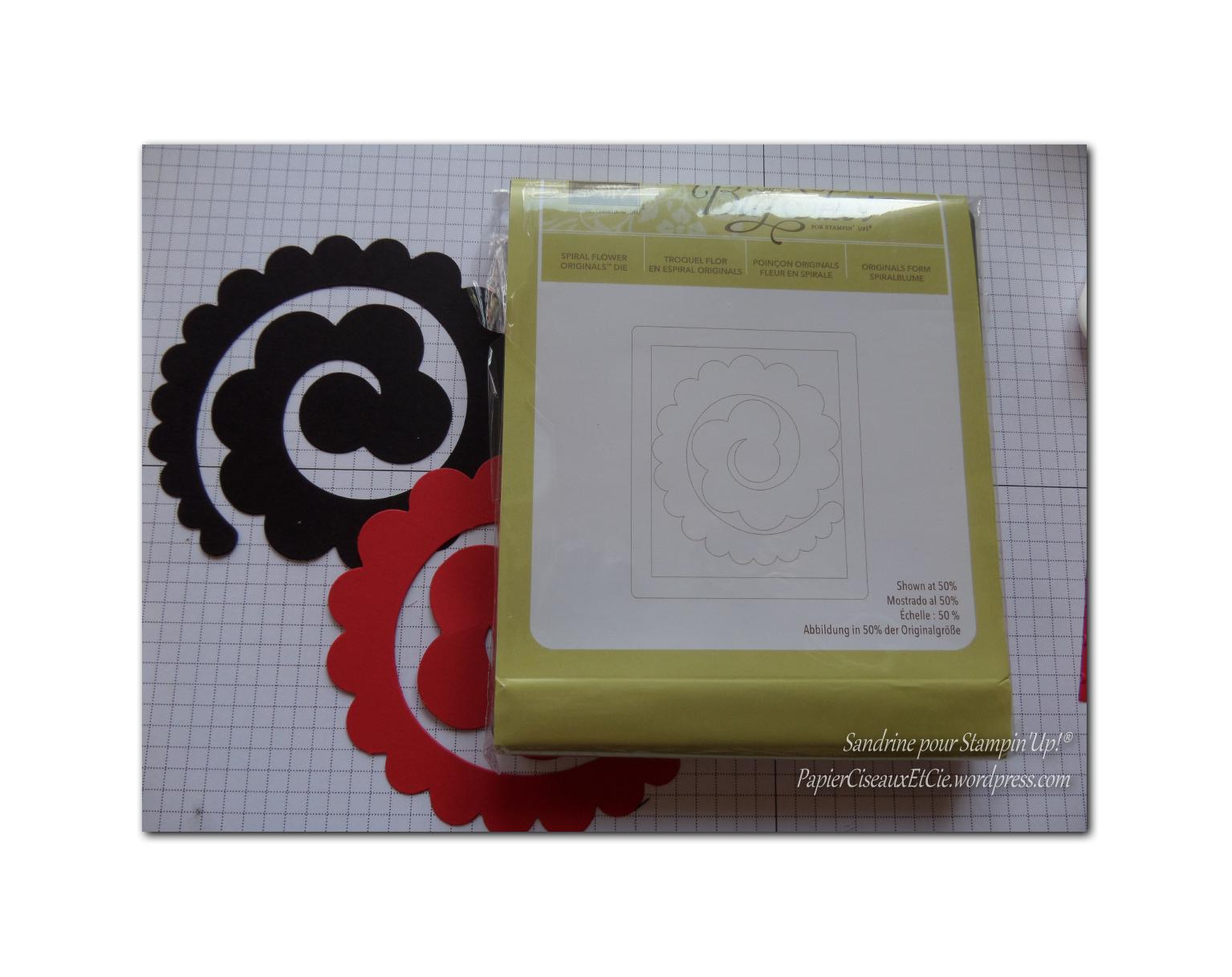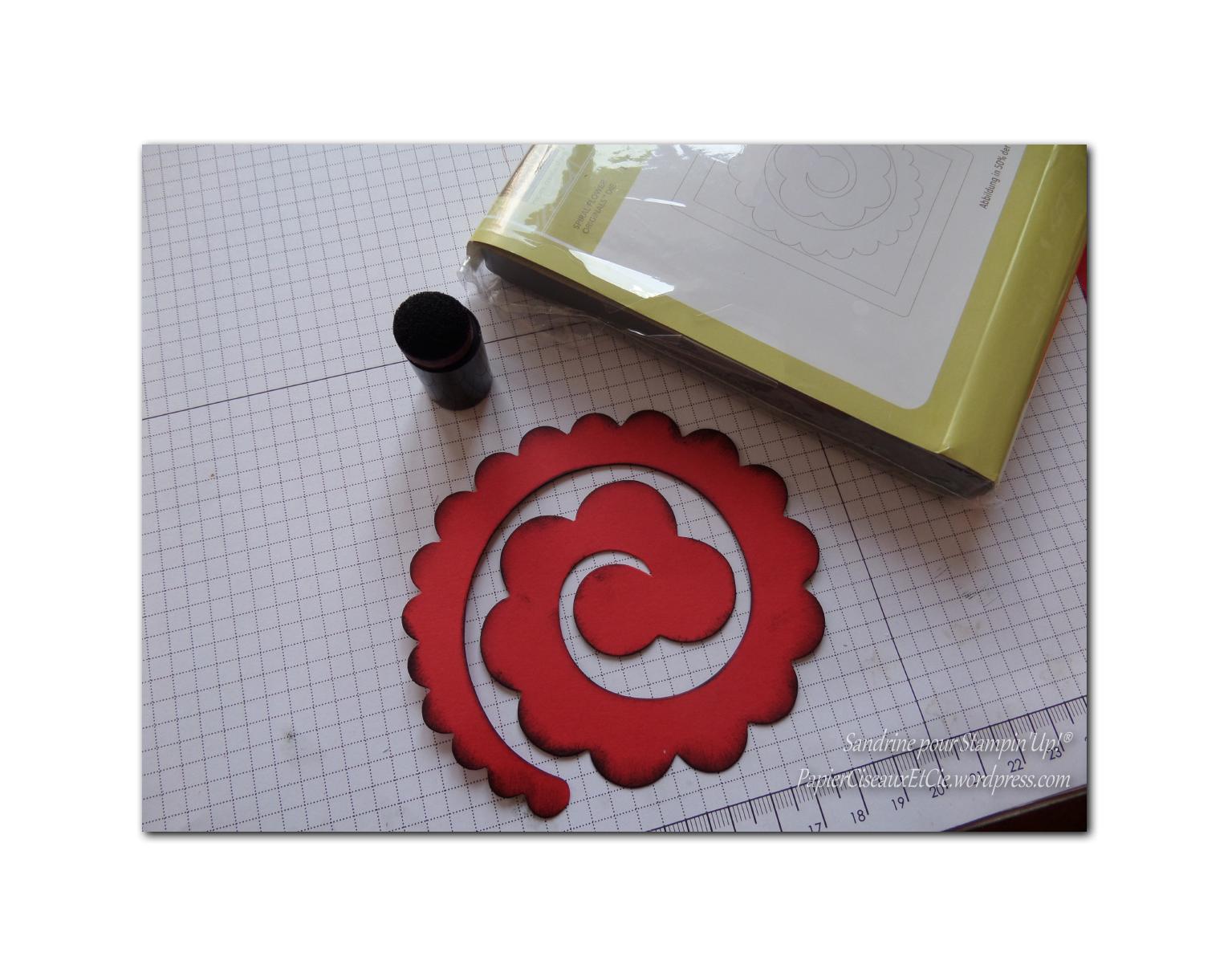 1- Passez à la big shot le papier noir nu et le rouge-rouge avec le bigz « Fleur en spirale »