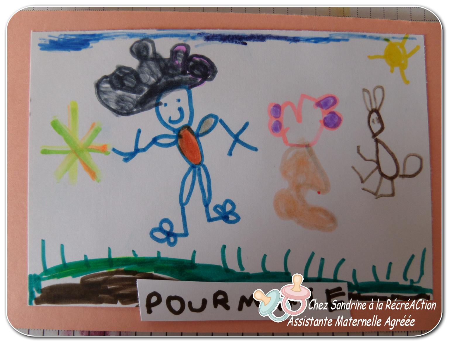 et voici le dessin qu’elle a fait et collé au dos de sa carte: