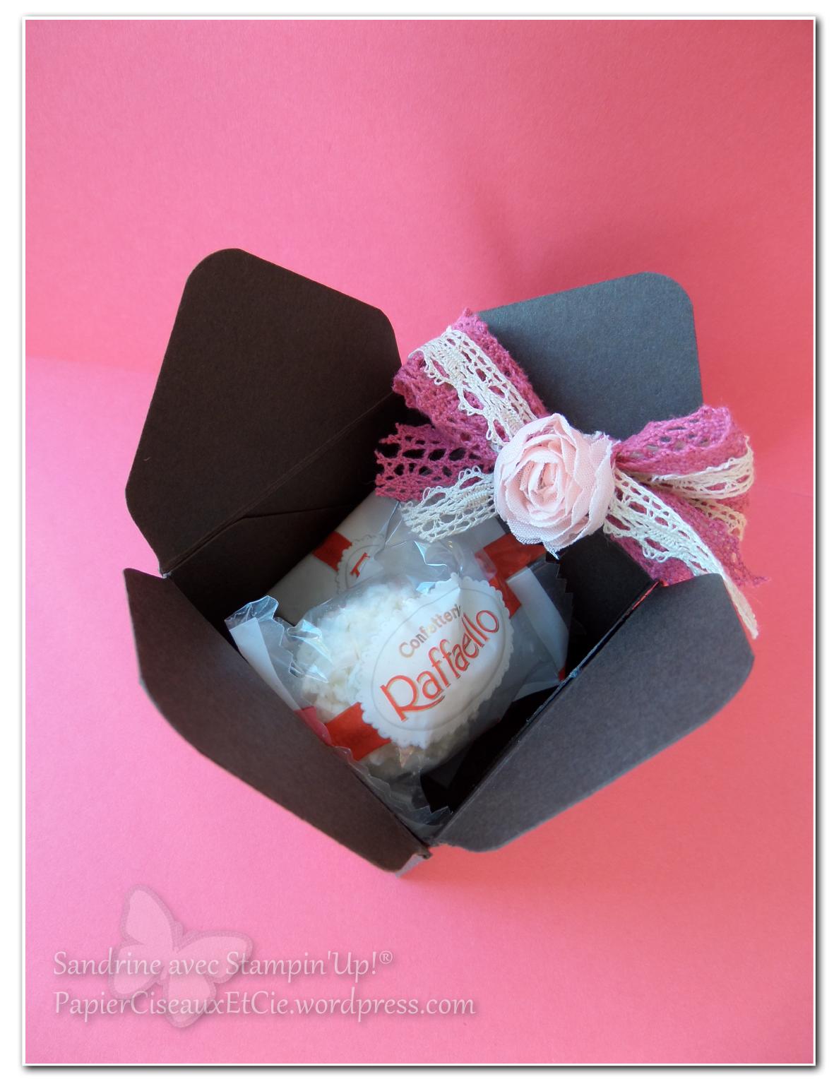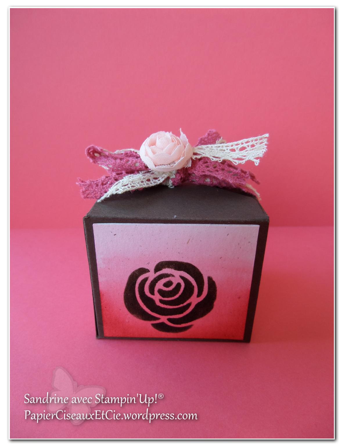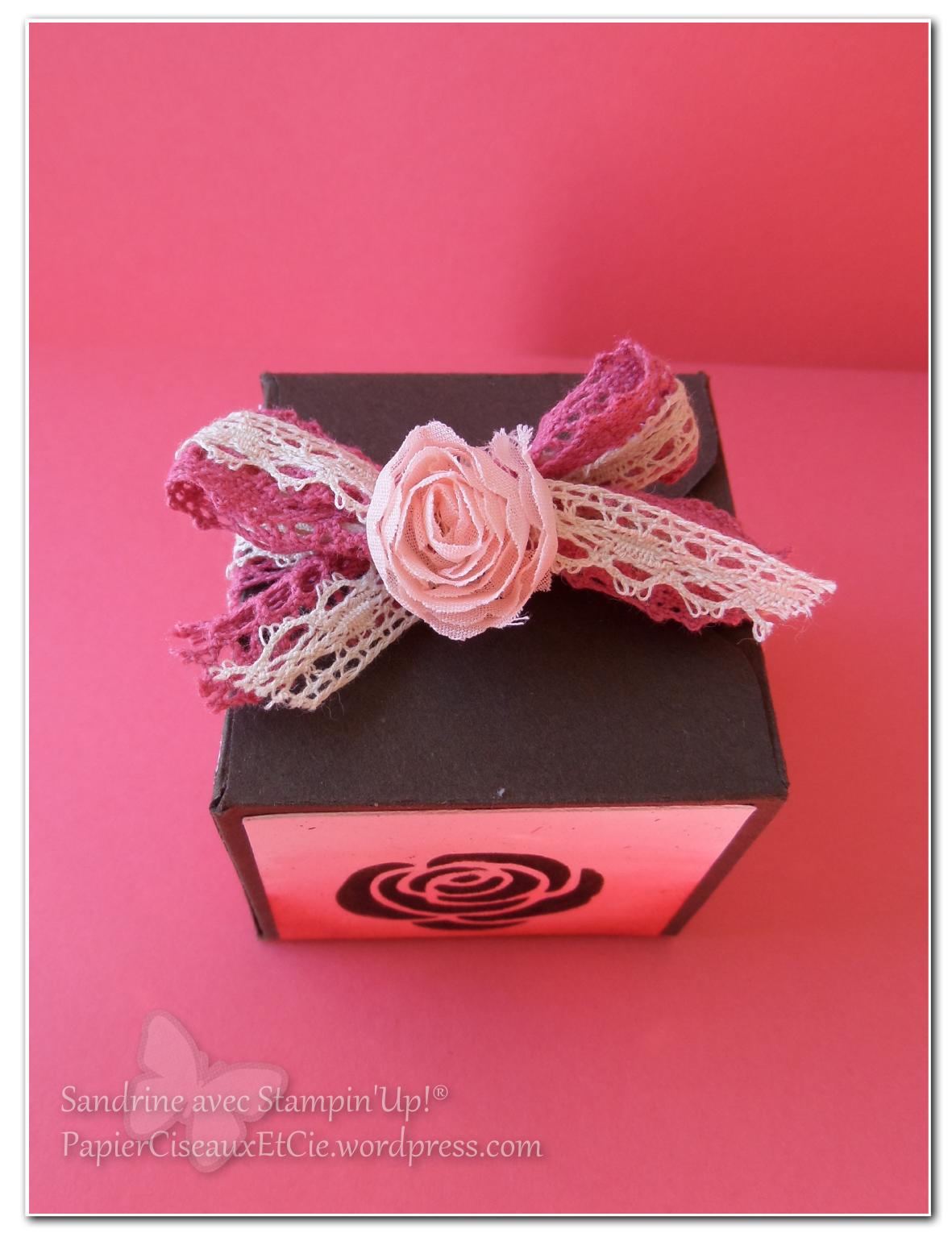 Pour la petite histoire, je devais offrir cette boîte par tirage au sort (comme je fais souvent lors d’atelier) mais l’atelier à mon domicile a duré tellement tard (19h15 pour le dernier départ) et nous étions tellement occupées à créer que j’ai oublié de faire le tirage au sort 😛 !!! Du coup j’ai offert cette boîte à la dernière invitée 🙂 qui était ravie 😉
