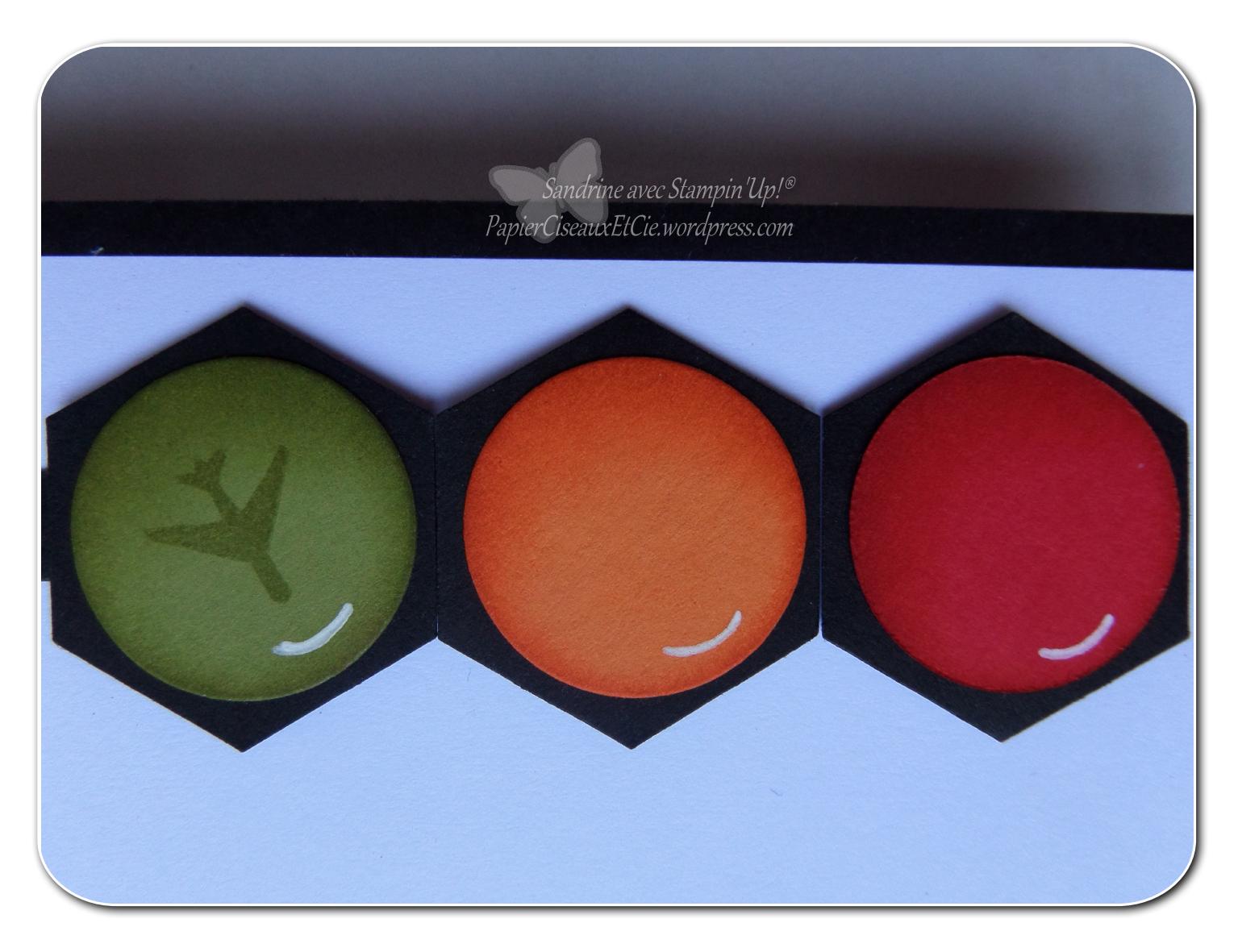 Après avoir penser à elle pour réaliser cette carte, je suis sortie du « vert olive/tarte au potiron/ rouge-rouge » pour me concentrer sur « vert/orange/rouge »: