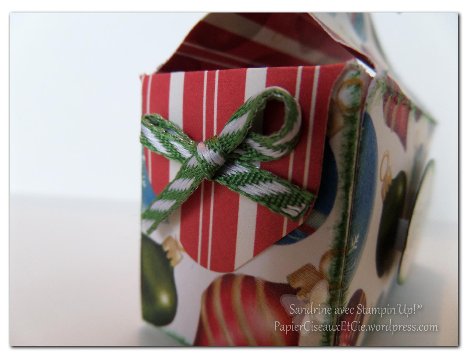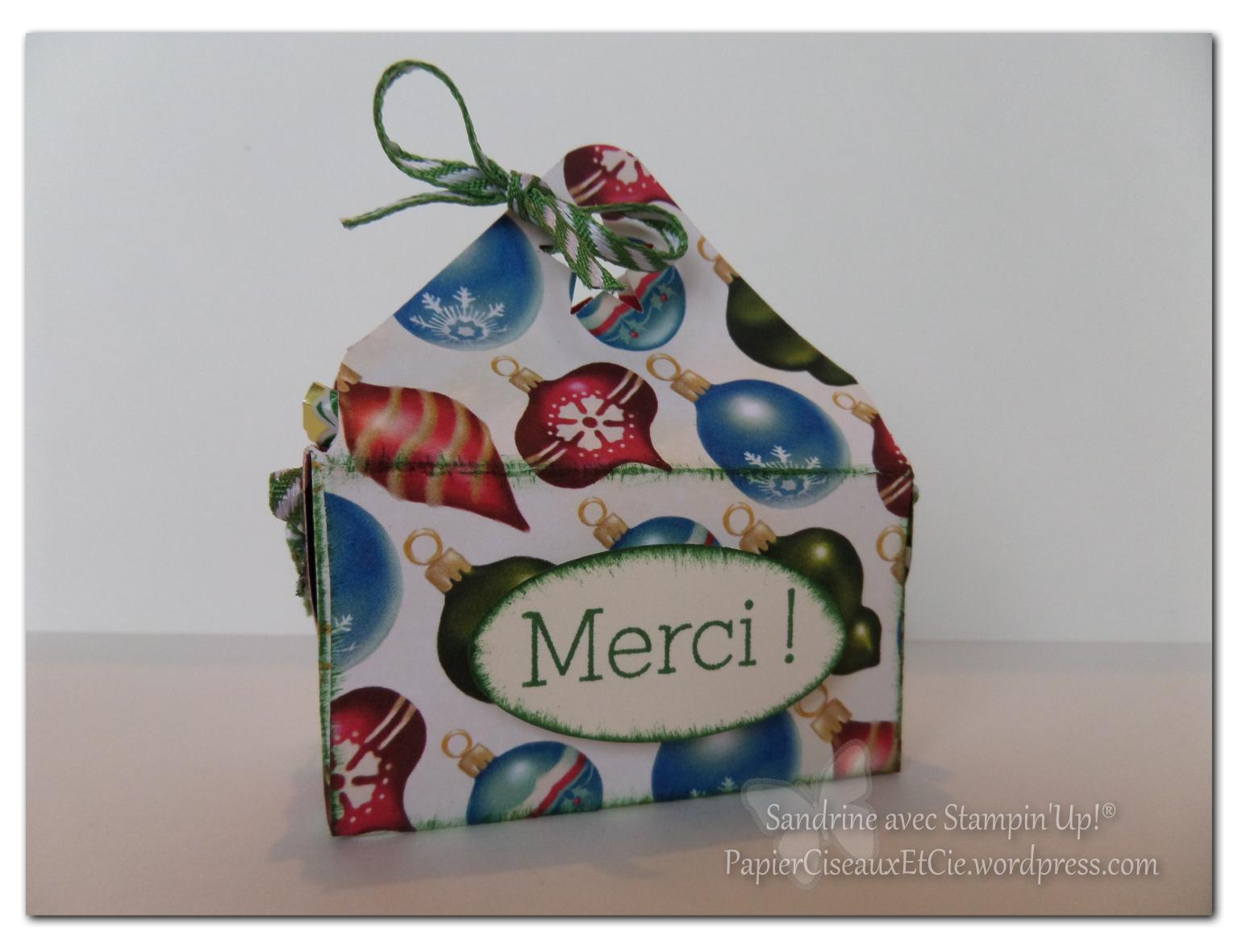 Voici une de mes dernières boîtes à remerciements, aux couleurs de Noël puisque c’est de saison:
