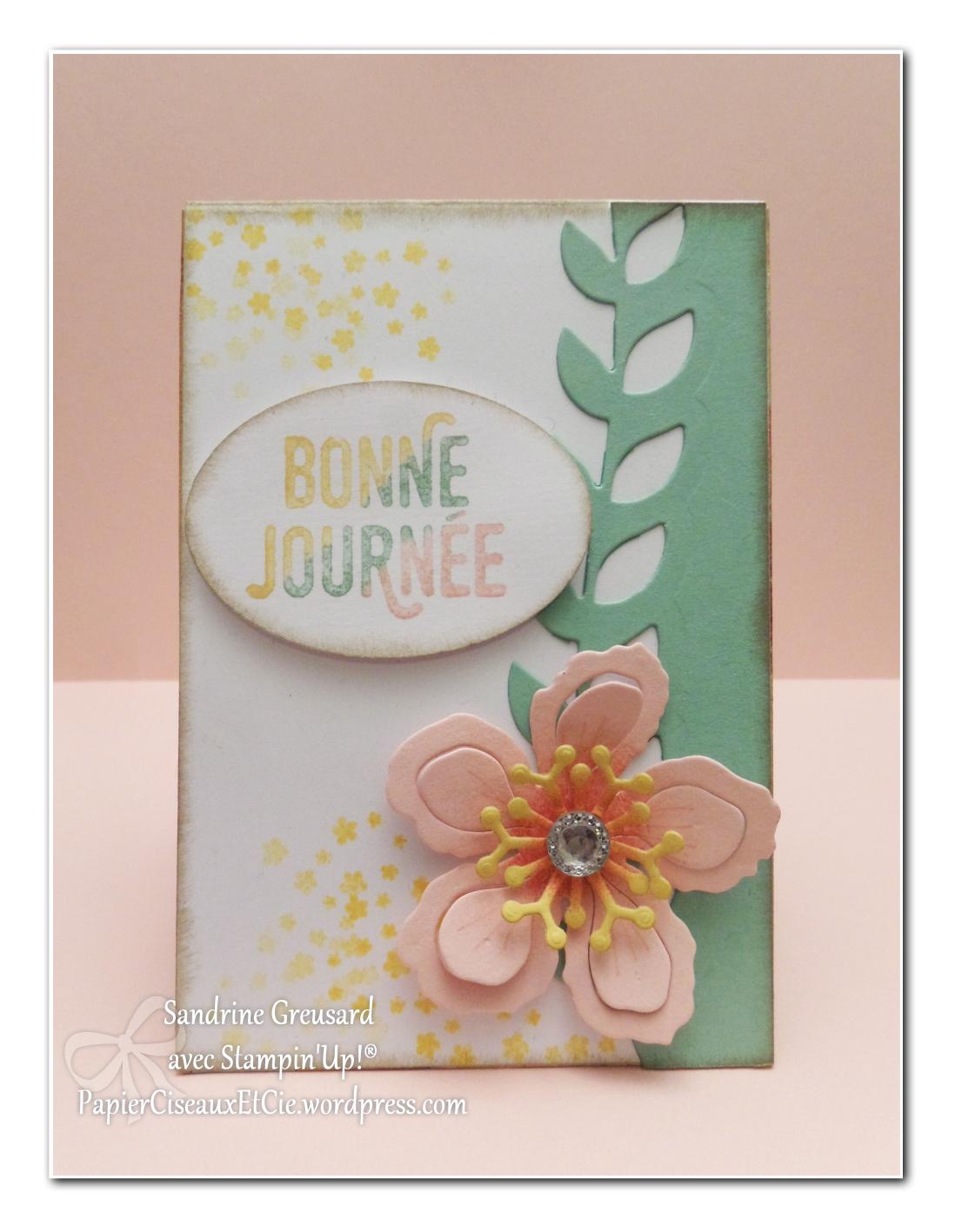 Aujourd’hui je vous présente une nouvelle réalisation avec ces merveilleuses fleurs cueillis dans l’ensemble du Jardin Botanique de Stampin’Up!®