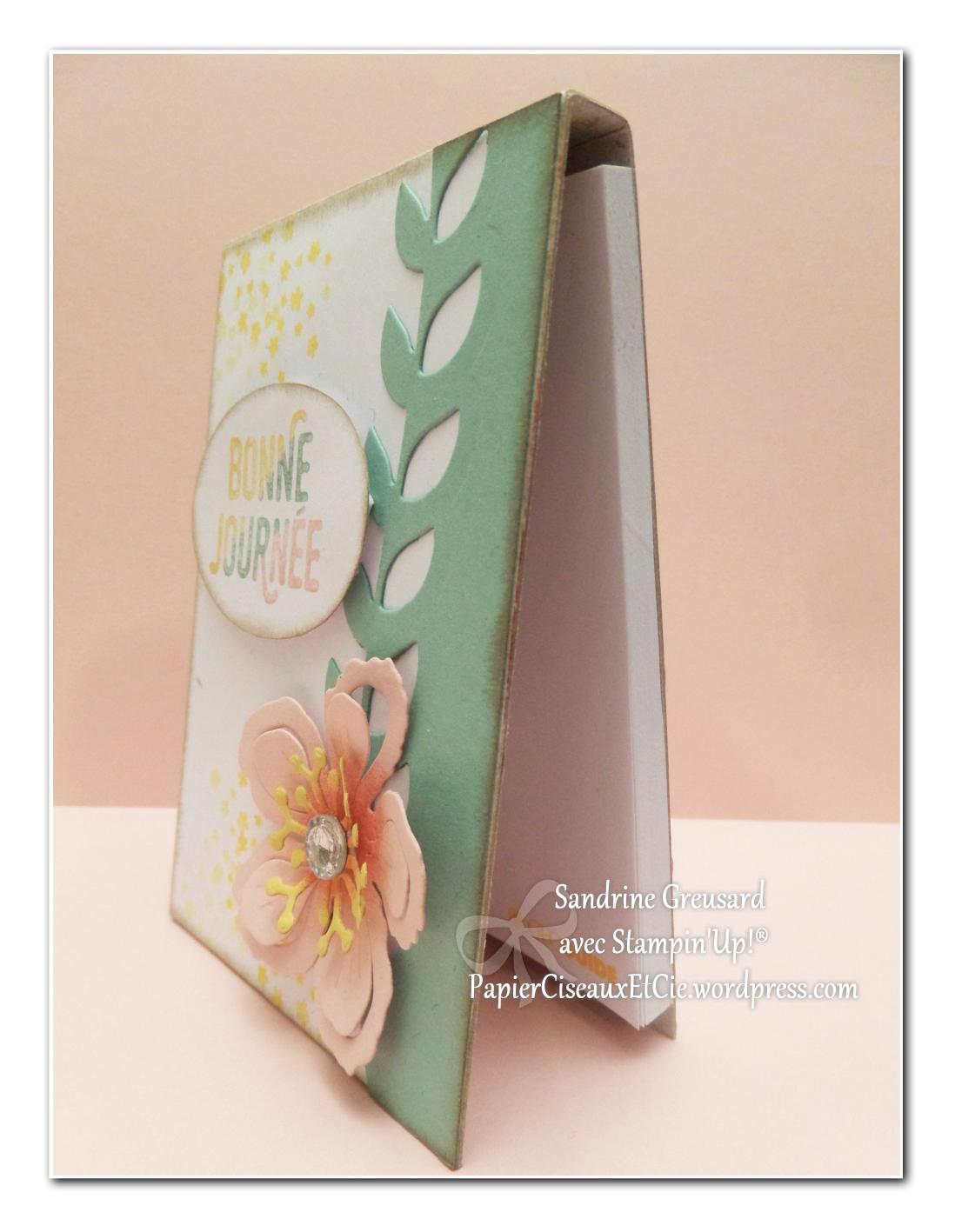 Très joli bloc-notes finement décoré. C’est vrai que j’adore aussi ce lot.