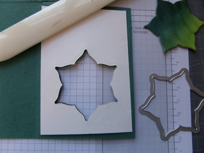 Au dos du volet où apparaîtra la découpe, prévoyez un papier blanc, il devra être découpé en même temps