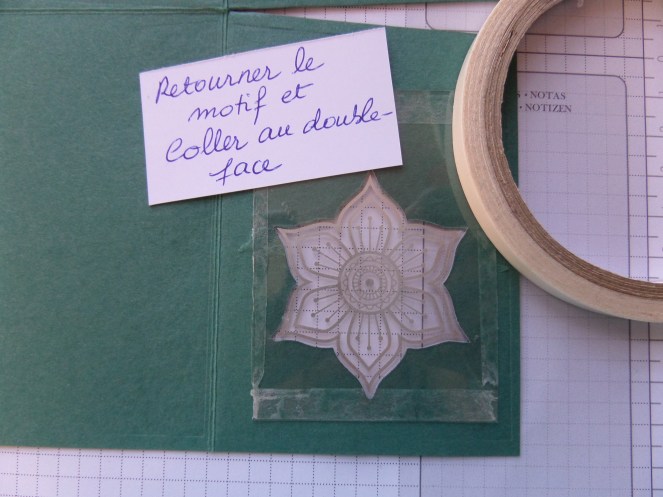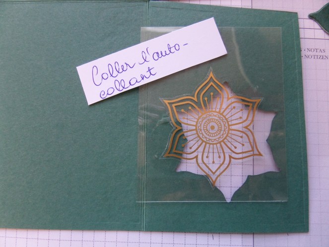 petite astuce: supperposez votre papier fenêtre sur la découpe pour positionner correctement l’auto-collant
