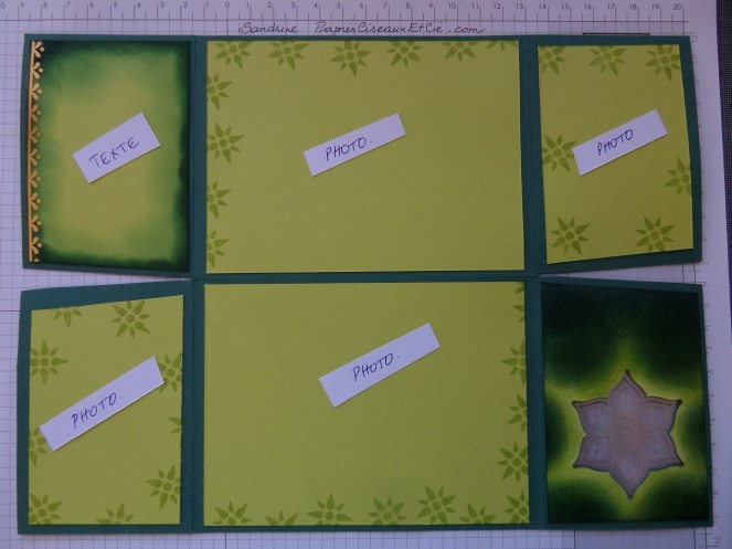 Vous pouvez coller comme ici 4 photos ou choisir de coller des photos sur tous les volets, cet album peut en contenir 10 🙂
