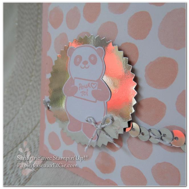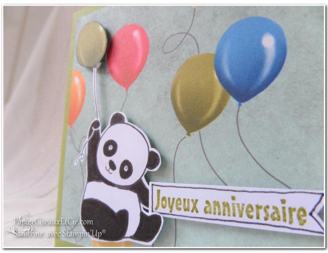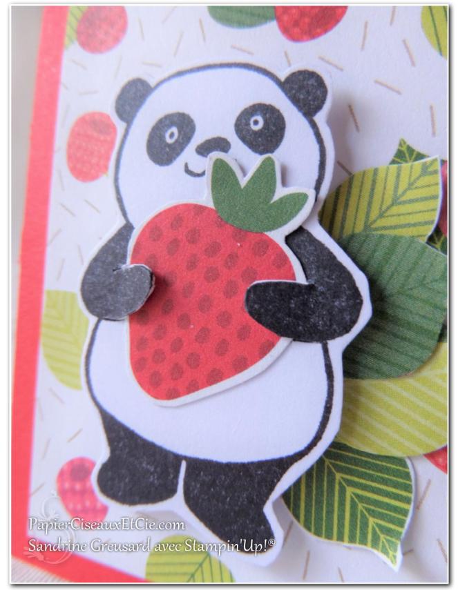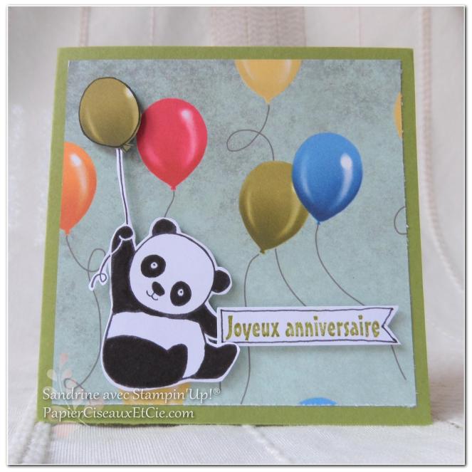 1. Je confirme, il est très choupinou ton panda !! C’est la papier « souvenirs d’anniversaire » que tu as utilisé pour la 1er carte ?