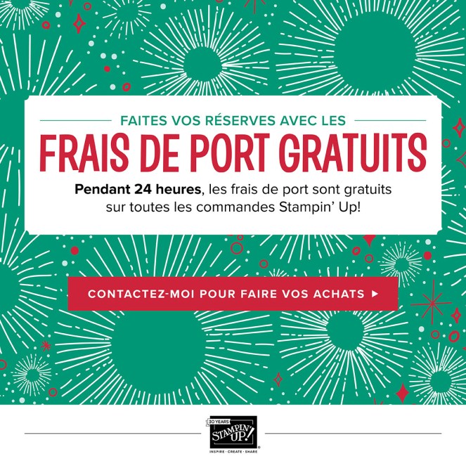 Pour finir en beauté la féérie en ligne, Stampin’Up! offre le lundi 27/11 pendant toute la journée, les frais de port !!!