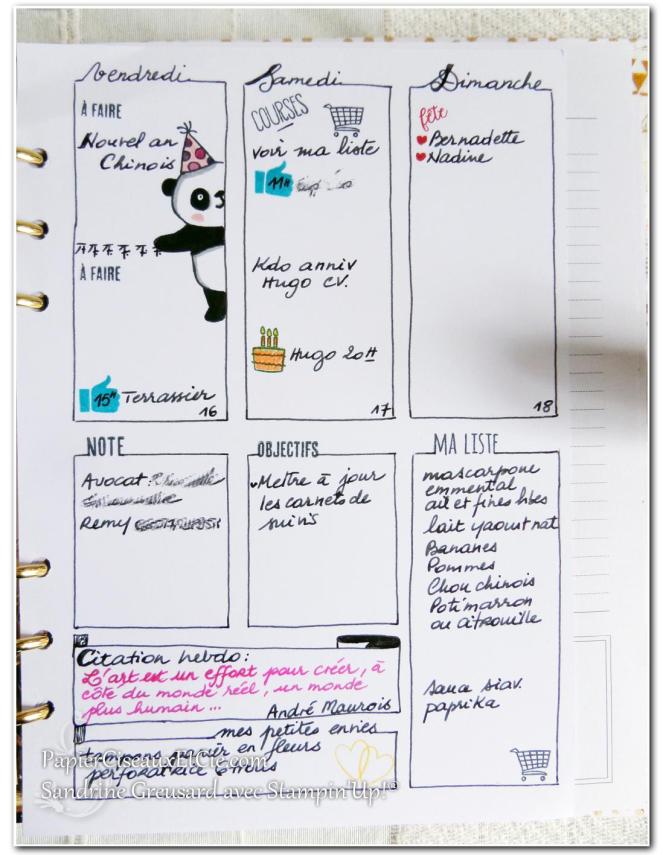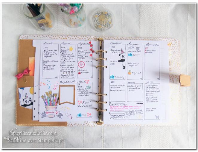 Si le sujet vous intéresse, je vous invite à jeter un oeil sur ma page FB où je partage quelques pages de mon agenda. Je ne mets pas forcément les photos ici car je n’utilise pas toujours du matériel SU (oui je sais ça pique les yeux de lire une telle phrase 😛 ) et/ou du matériel SU qui n’est plus disponible à la vente sur catalogue (oui l’horreur cette démo 😛 )