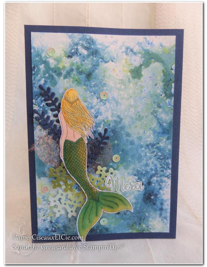 Ce mois-ci nous avons choisi le thème des vacances et je vous propose une création marine avec le set de tampons « Magical Mermaid » 🙂