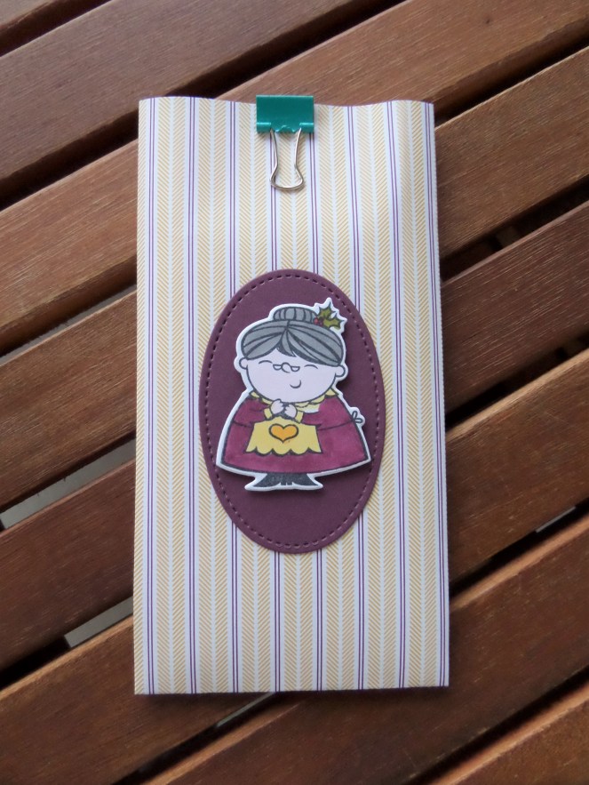 Et quand on ouvre ce paquet cadeau, on trouve une très jolie pochette avec une petite mère Noël en couleur « violine » mais que contient telle?????