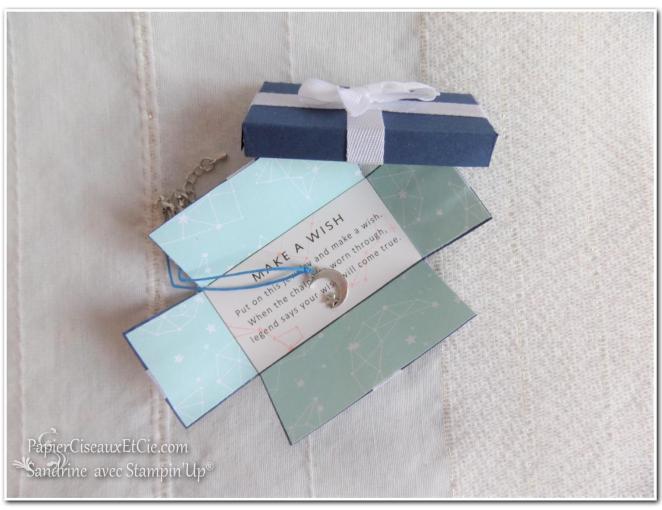 Alors que je cherchais une idée cadeau, je suis tombée sur cette « breloque » et j’ai dessuite pensé à la collection « Berceuse étoilée » que j’ai donc utilisé 🙂