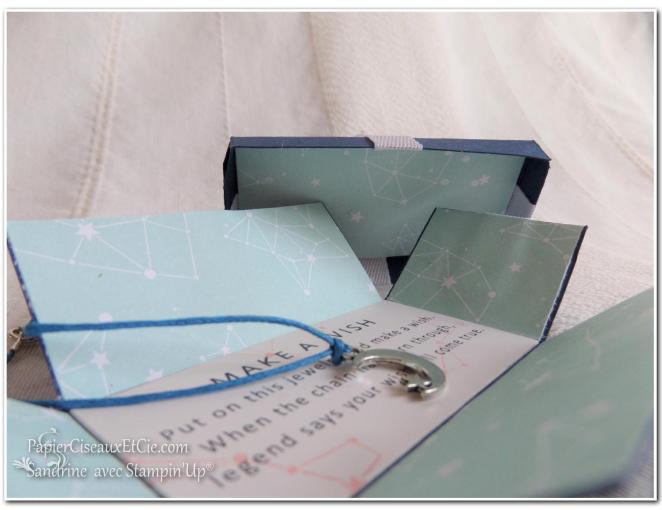 Elle est réalisé avec la collection de papiers « Berceuse étoilée », du sol au plafond! puisque même l’intérieur du couvercle est tapissé 😉