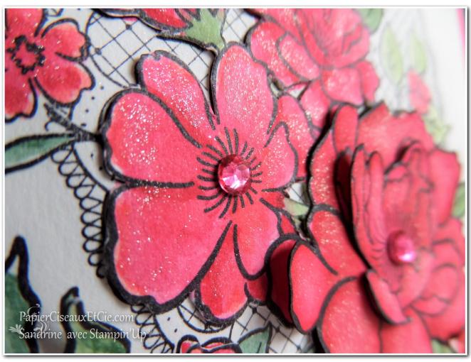Au coeur des fleurs j’ai déposé un cristal « transparent » que j’ai teinté grâce aux feutres à alcool couleur: Lèvres vermeilles