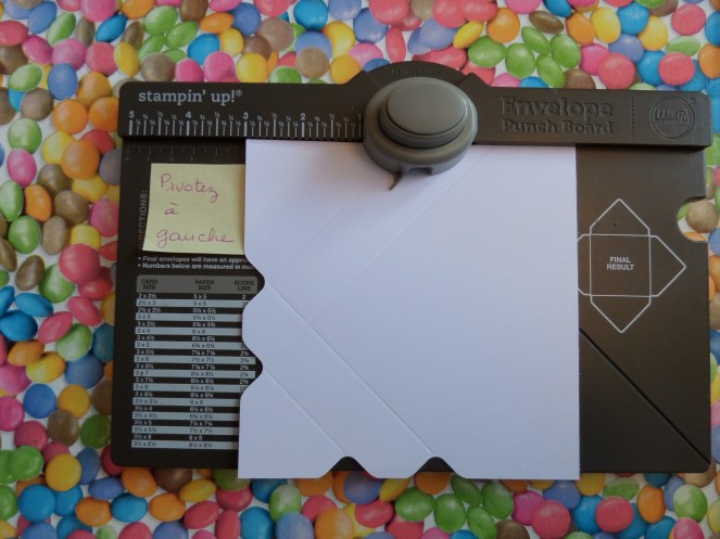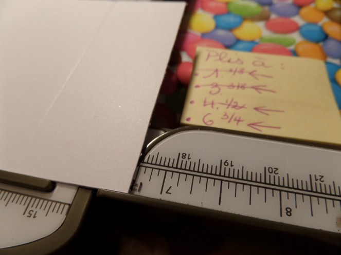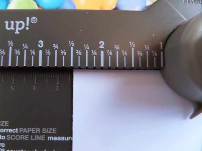 Comme je sais certaines peu à l’aise avec les inch, je contiue à vous montrer où positionner votre papier que ce soit pour les coupes ou les plis 😉