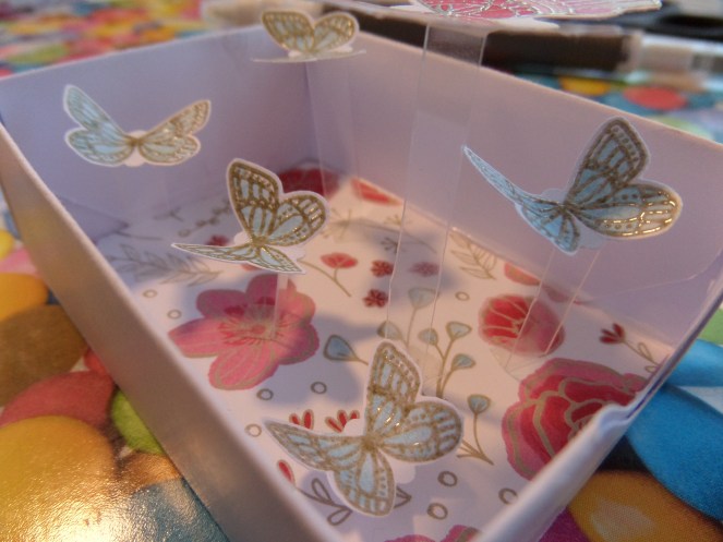Voici, en vidéo, ma boîte, dont la déco intérieure et extérieure est dédiée aux papillons: