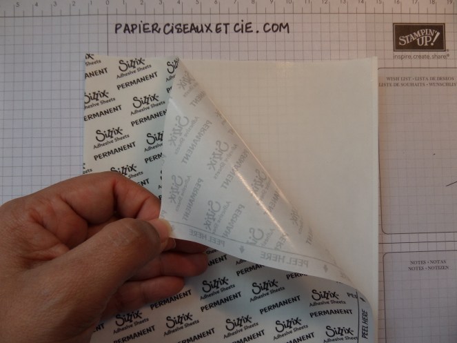A l’étape 2/ ouvrez votre feuille adhésive et collez la directement sur votre papier brouillon