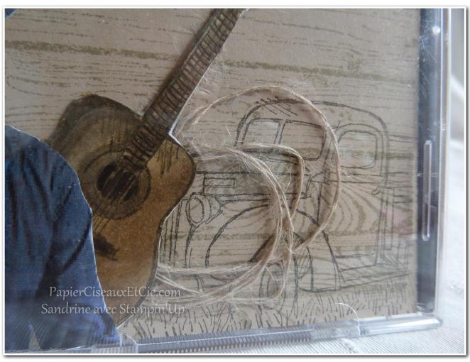 J’ai essayé de mettre les éléments de country: guitare, bois, pick-up… du set de tampons qui nous quitte « Country Livin’  »