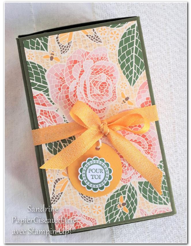Cette fois, j’ai mis à l’honneur un papier que j’aime beaucoup: le papier « esprit mosaique » qui est tout en relief!!