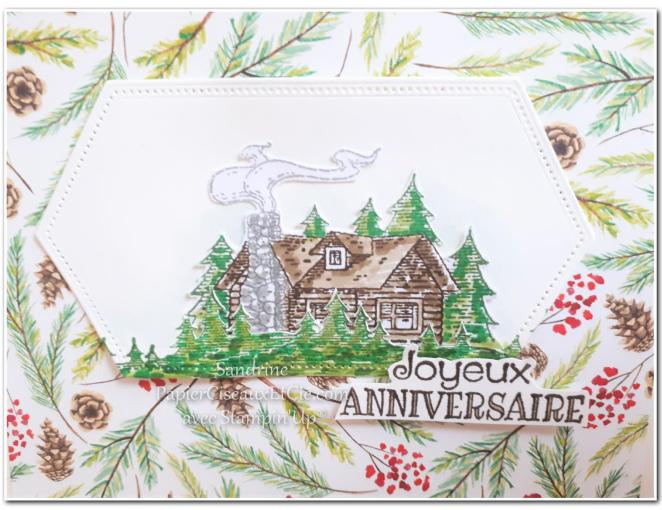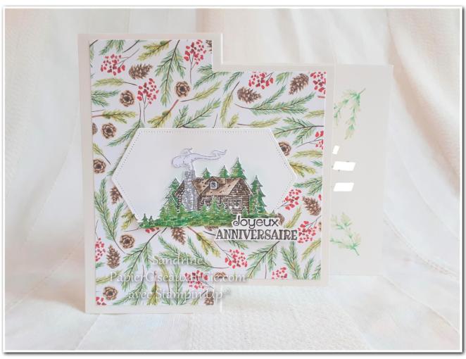 1. Tre jolie carte ..le petit chalet est bîen mis en valeur.. Et la boite j adore!! Très chouette! Jacqueline a du être ravie. Bon anniversaire à elle en retard.