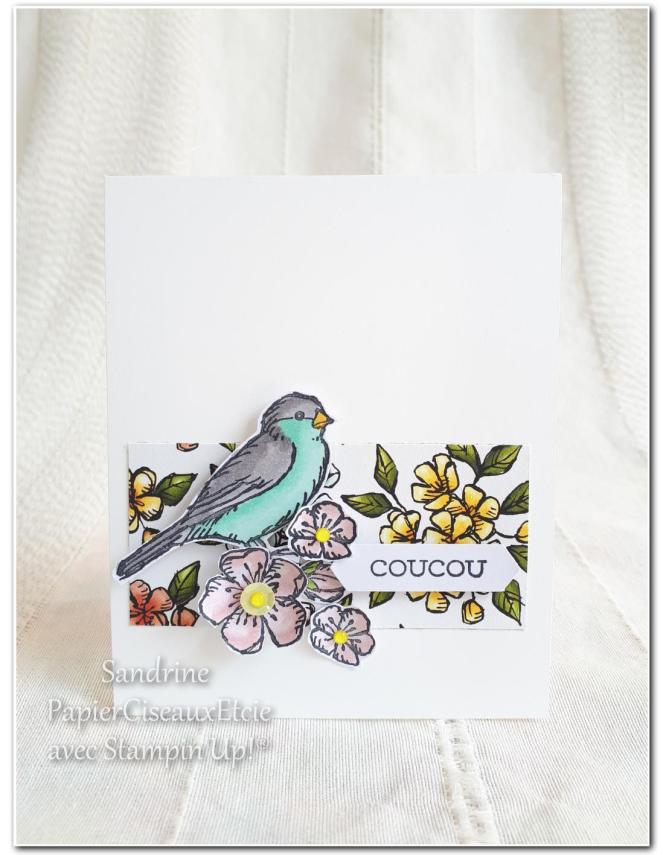Cette carte est partie dans les Antilles… apporter un peu d’Europe avec cet oiseau de nos contrées et ces fleurs de cerisiers 😉