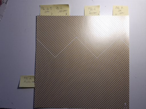 2- Marquez des plis I verticaux à 5cm puis 10cm puis 20cm et enfin 25cm