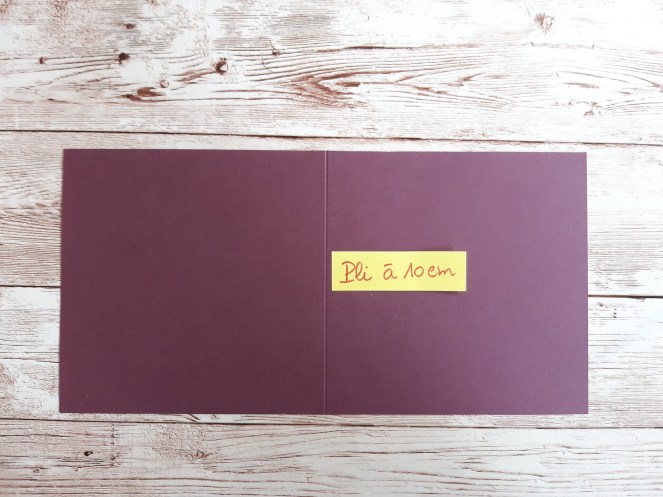 8- Dans le restant du papier unis coupez une morceau de 10 x 20 et le plier à 10