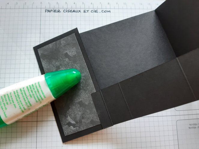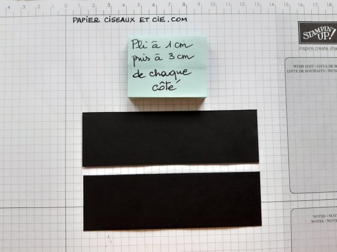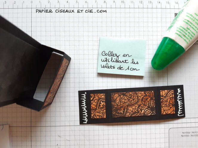 coller d’abord un côté en aligant bien le bord de la base sur le pli à 1cm