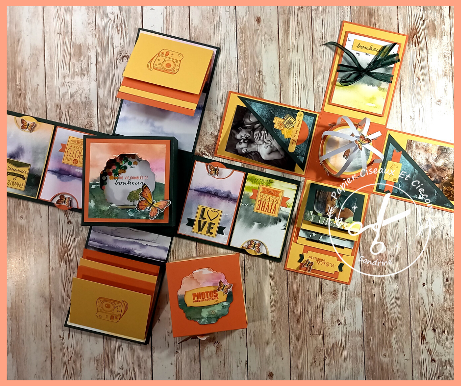 Ce mois-ci , c’est Babette qui nous propose un projet « Wouah »!! Des boîtes explosives avec plusieurs minis et même une surprise en son centre!!