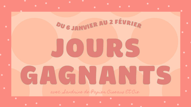 Il ne reste plus qu’un seul jour pour profiter de la promotion… Une petite parenthèse créative où, pour chaque 60€, tu gagnes des coupons de réduction ! Tu as toutes les infos ici : JOURS GAGNANTS
