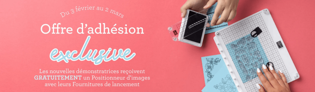 Profite d’une offre exceptionnelle !! Deviens >Démonstratrice < entre le 3 février et le 2 mars et tu recevras gratuitement notre tout nouveau Positionneur d’images, l’outil parfait pour tamponner avec précision et créer des projets impeccables. Ce bonus exclusif n’est valable que durant cette période ! Et c’est en suivant ce lien que tu sauras tout sur l’aventure Stampin’Up! 😍